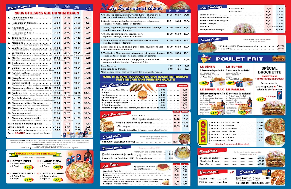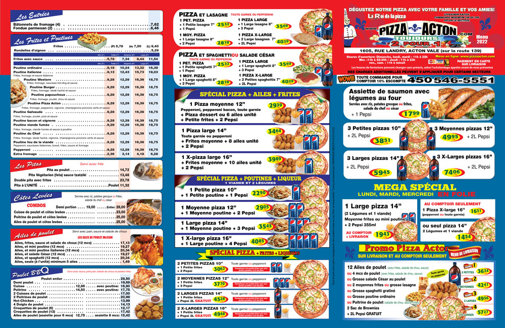 Introducing the Menu at Pizza Acton 2 pour 1 Inc